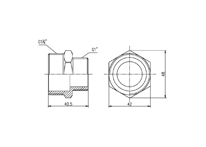 Ниппель редукционный SD Forte подключение 1" 1/4х1" НН изготовлен из никелированной латуни, предназначен для соединения труб разных диаметров.