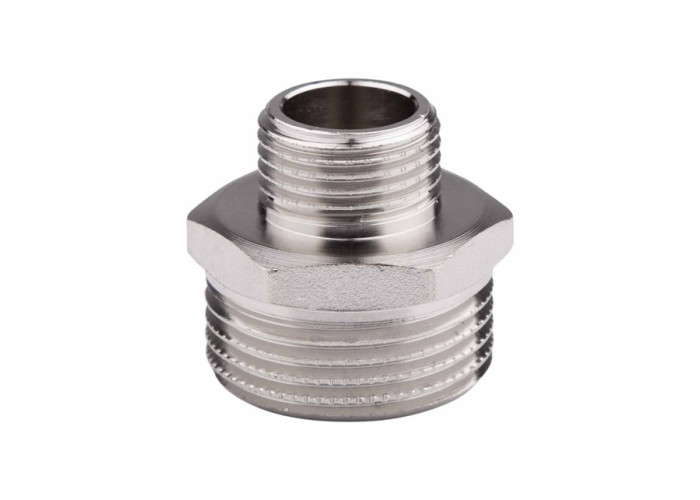 Ниппель редукционный SD Forte подключение 1/2"х1/4" НН изготовлен из никелированной латуни, предназначен для соединения труб разных диаметров.