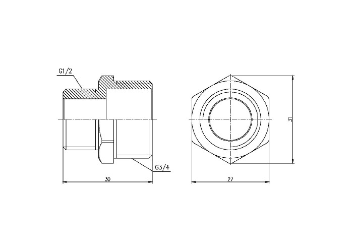 Ниппель редукционный SD Forte подключение 1/2"х3/4" НН изготовлен из никелированной латуни, предназначен для соединения труб разных диаметров.