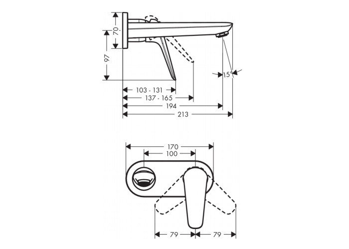 С возможностью размещения рукоятки справа или слева. Выступ 194 мм. Обычная струя, расход воды: 5 л/мин, незапираемый клапан фильтра, подходит для проточных водонагревателей, латунь, хром.