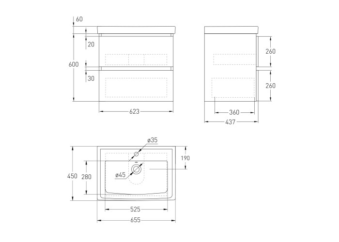 • Керамическая накладная раковина с переливом, 1 отверстие под смеситель