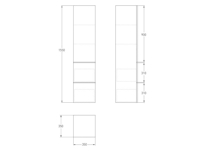 1 распашная дверца, 2 выдвижных ящика