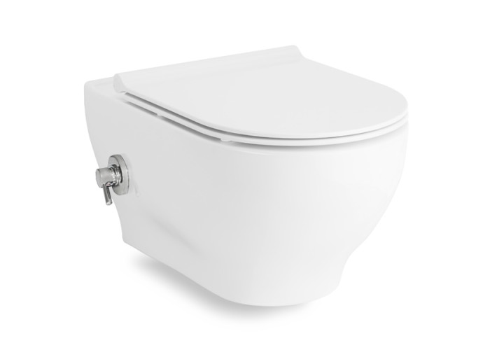 Подвесной безободковый унитаз с функцией биде Volle Oliva Rimless 13-45-165WB с сиденьем Slim slow-closing.