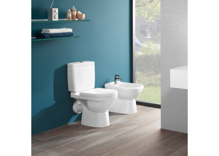 Горизонтальный выпуск, сливной бачок с боковым подводом воды и механизмом двойного смыва (3/6 л), сиденье дюропласт soft-close (медленное закрывание), крепления из нержавеющей стали