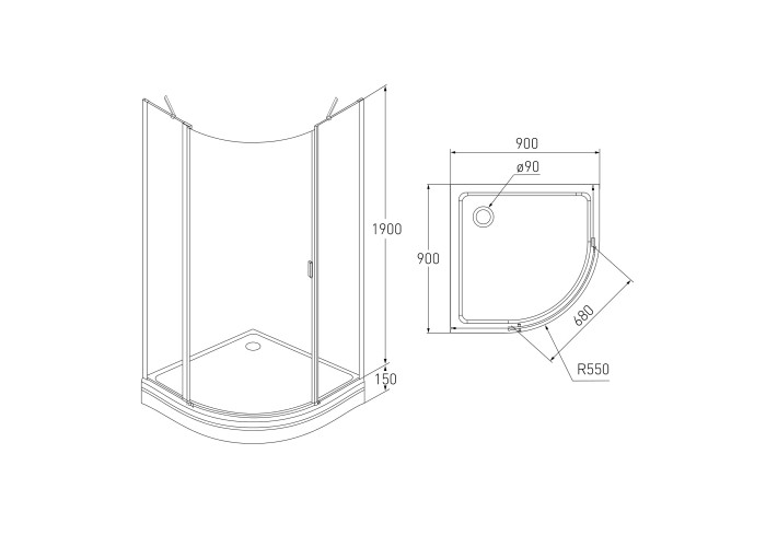 • Размеры (ДxШxВ) – 900x900x2050 мм