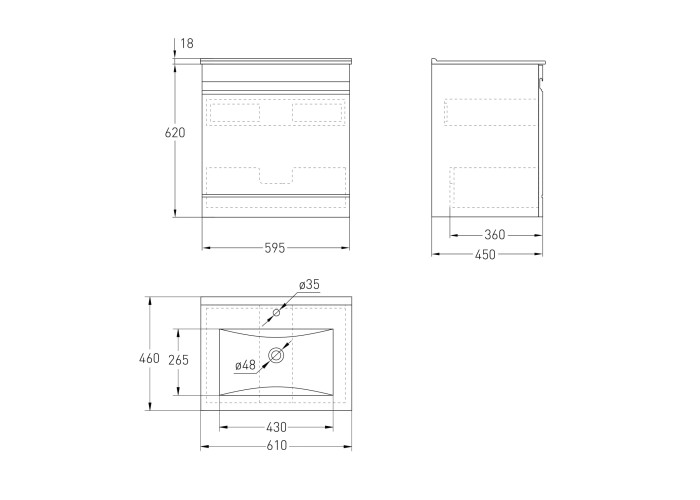 • Керамическая накладная раковина с переливом, 1 отверстие под смеситель