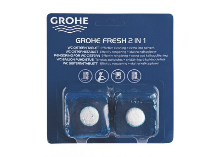 Освежающие таблетки для инсталляций оборудованных системой GROHE FRESH Grohe Fresh 38882000 не только обеспечивают длительную свежесть, но и защищают от повторного загрязнения, поддерживают длительную сверкающую чистоту в туалете и уменьшают известковую грязь. Упаковка состоит из двух таблеток по 50 грамм.