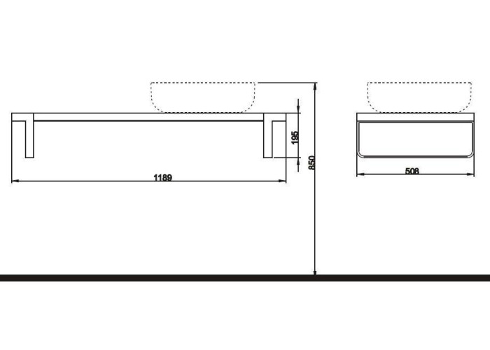 OVUM/EGO столешница под умывальник, правая 118,9 x 19,5 x 50,8 см, тик (пол.)