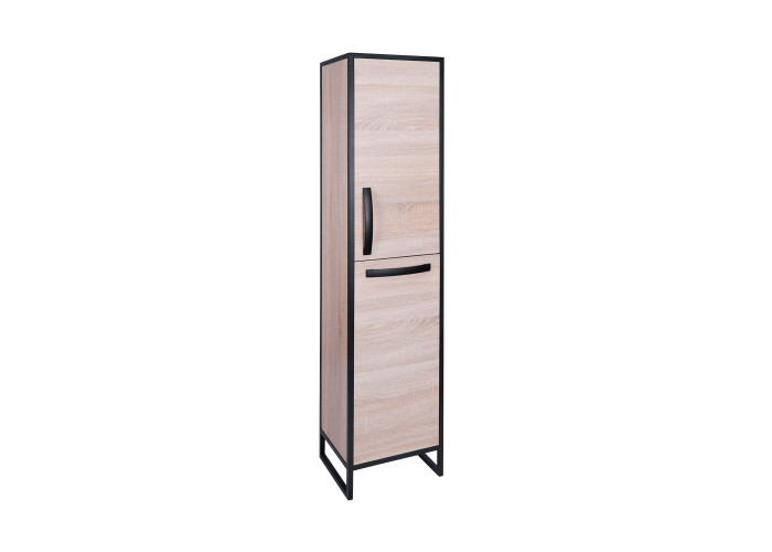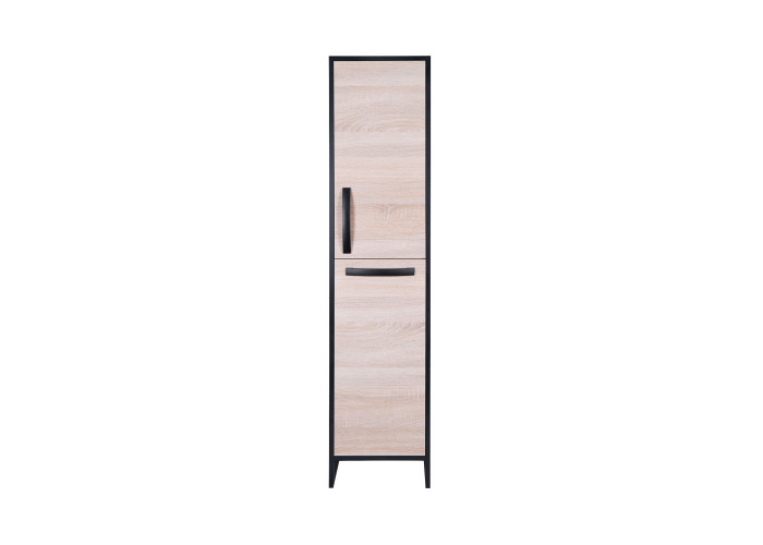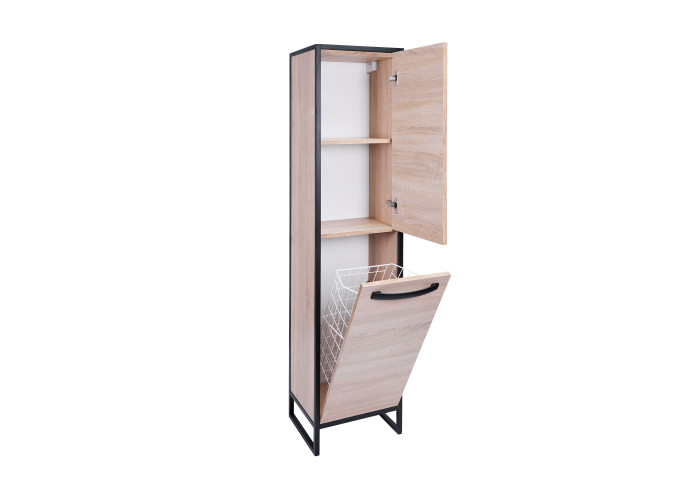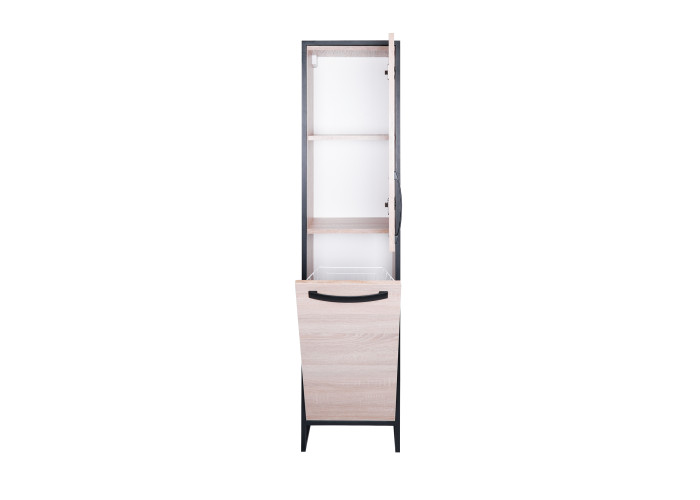 Напольный пенал Qtap Taurus 350х1750х300 Whitish oak QT2475PN175KRWO цвета белого дуба изготовлен из ЛДСП, а фасадная часть из МДФ. Изделие оснащено двумя отделениями, в которых расположены полки и вместительная бельевая корзина. Двери изделия оснащены механизмом доводчика. Стальной крашеный каркас черного цвета придает пеналу оригинальный внешний вид, благодаря которому он впишется в дизайн любой современной ванной комнаты.