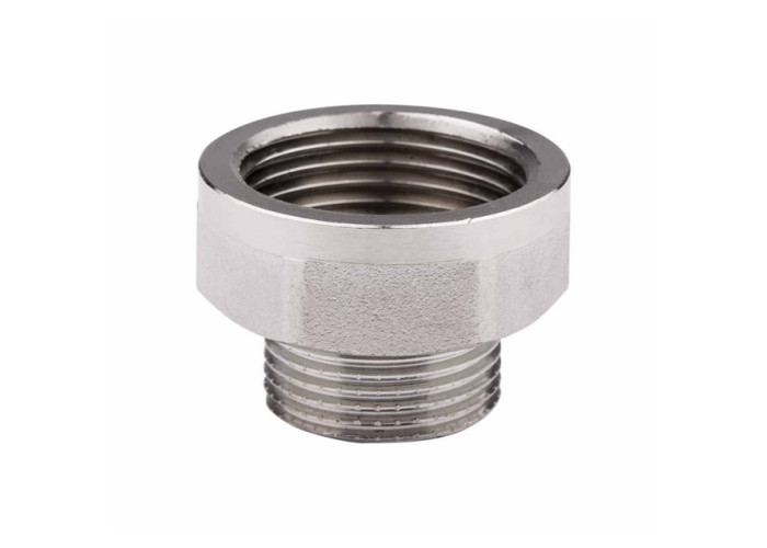 Переход никелированный SD Forte с подключением 1" 1/2х1" 1/4 ВН осуществляет переход с одного диаметра трубопровода на другой и имеет при этом разную резьбу.