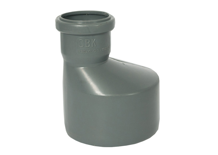 Перехідник діаметр 110/50 мм пляшковий СВК для внутрішньої каналізації. СВК - це торгова марка каналізаційних труб і фітингів класу економ. Продукція призначена для обладнання систем водовідведення з максимальною температурою стічної рідини 60 град. і короткочасної (до 1 хв.) 95 градусів, а також для вентиляції і для внутрішніх зливових стоків. Також продукція оснащена ущільнювачів гумками. ПВХ продукція виробляється з непластифікованого полівінілхлориду як монолітна (одношарова), так і тришарова. Вона не псується корозією, стійка до дії кислот, лугів і солей. Монтувати конструкцію на місці досить просто, а з'єднання виходить герметичним. При демонтажі або заміні усувається деталь також швидко. Відмінні техніко-економічні характеристики показали ПВХ каналізаційні труби і фітинги з діаметрами 110-200 мм, що зробило їх дуже популярним в приватному будівництві (дачі, невеликі будови). Характеристики: виготовлені з поліпропілену, призначені для монтажу каналізації, а саме для внутрішніх каналізаційних мереж. Виробник: "СВК", Україна.