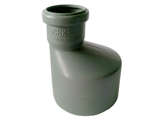 Перехідник діаметр 110/50 мм СВК для внутрішньої каналізації. СВК - це торгова марка каналізаційних труб і фітингів класу економ. Продукція призначена для обладнання систем водовідведення з максимальною температурою стічної рідини 60 град. і короткочасної (до 1 хв.) 95 градусів, а також для вентиляції і для внутрішніх зливових стоків. Також продукція оснащена ущільнювачів гумками. ПВХ продукція виробляється з непластифікованого полівінілхлориду як монолітна (одношарова), так і тришарова. Вона не псується корозією, стійка до дії кислот, лугів і солей. Монтувати конструкцію на місці досить просто, а з'єднання виходить герметичним. При демонтажі або заміні усувається деталь також швидко. Відмінні техніко-економічні характеристики показали ПВХ каналізаційні труби і фітинги з діаметрами 110-200 мм, що зробило їх дуже популярним в приватному будівництві (дачі, невеликі будови). Характеристики: виготовлені з поліпропілену, призначені для монтажу каналізації, а саме для внутрішніх каналізаційних мереж. Виробник: "СВК", Україна.