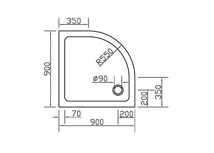 Поддон SMC размер 900*900*35 мм, полукруглый (секторный), радиус 550 мм. В комплект поставки входит лицевая панель и комплект ножек. Высота поддона в сборе с панелью 15 см. Сифон в комплект НЕ входит. Рекомендуем выписывать к данной позиции сифон с косым или прямым выфодом Ф90 мм, артикула 599-drain E, 599-drain-90. Материал: стеклокомпозит Sheet Molding Compound поддон, панель акрил, ножки пластик. Поддон выдерживает вес 500 кг.Поддон 900*900*35 мм, мелкий, полукруглый с панелью и ножками.