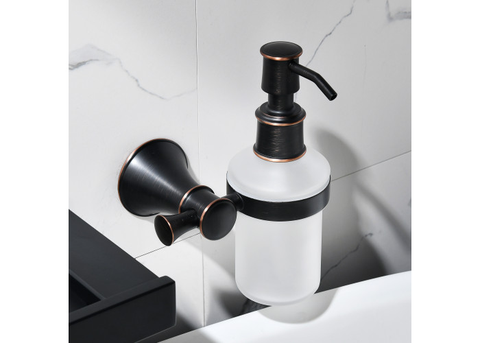 PODZIMA ZRALA дозатор для мыла настенный, механический. Материал: латунь, держатель - цинк, колба - стекло.