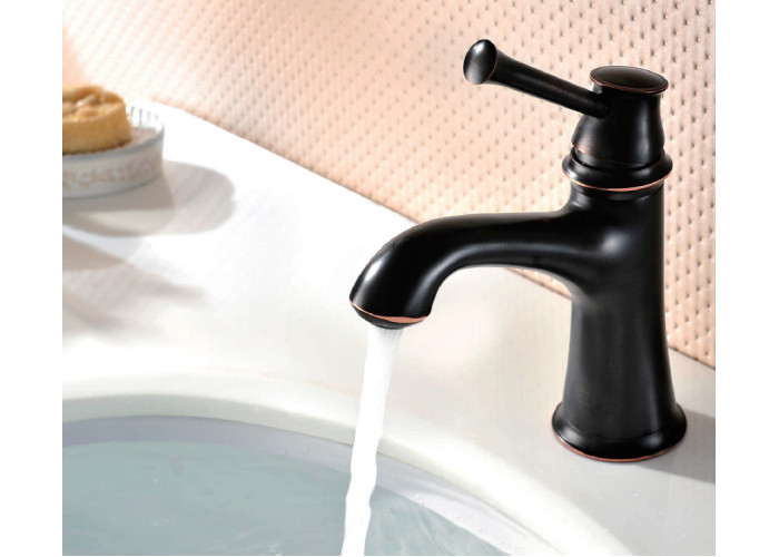 Однорычажный смеситель для умывальника, керамический узел смешивания, расход воды до 7 л/мин, аэратор, подходит для проточных нагревателей, цвет бронза тасканская.