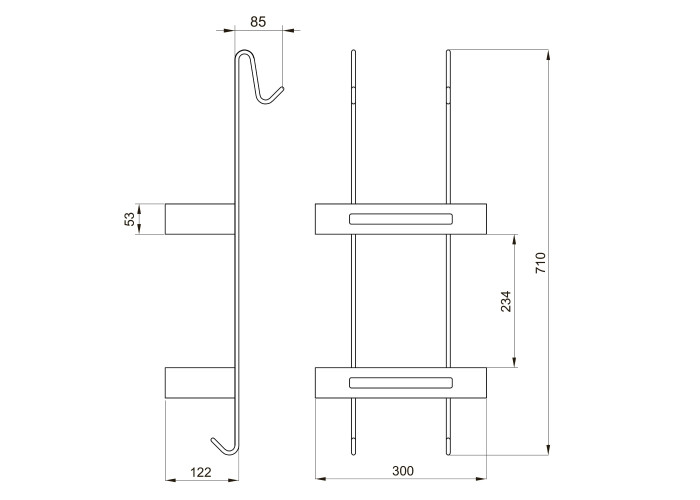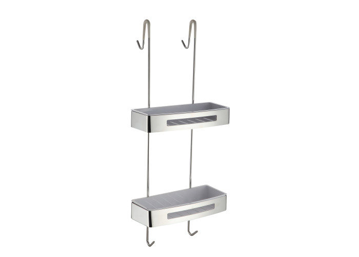Полочка навесная, двойная с пластиковыми вставками 720*300*137 мм, цвет - хром. Держатель - нержавейка, полочки - пластик.