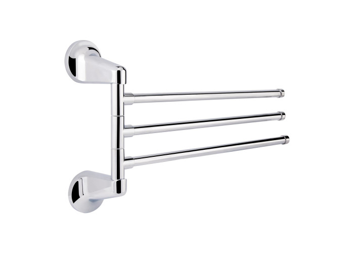 Полотенцедержатель Cosh (CRM)S-80-904-3 выполнен из металла с хромированной поверхностью, которая предотвращает образование коррозии и грязи. Держатель имеет три поворотных стержня, на которые можно разместить три полотенца. Длина изделия 305 мм.