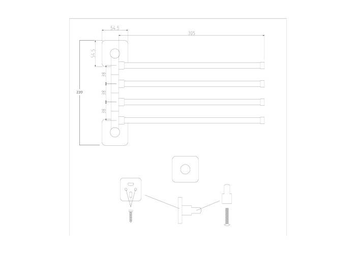 Полотенцедержатель GF (CRM)S-2714 выполнен из металла с хромированной поверхностью, которая предотвращает образование коррозии и грязи. Держатель имеет четыре поворотных стержня, на которые можно разместить четыре полотенца. Длина изделия 305 мм.