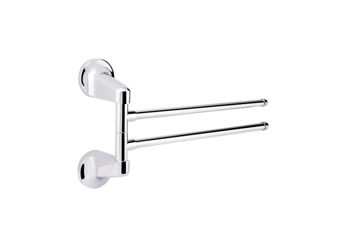 Полотенцедержатель GF (CRM)S-2812 выполнен из металла с хромированной поверхностью, которая предотвращает образование коррозии и грязи. Держатель имеет два поворотных стержня, на которые можно разместить два полотенца. Длина изделия 340 мм.