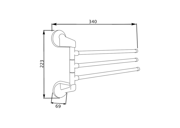 Полотенцедержатель GF (CRM)S-2813 выполнен из металла с хромированной поверхностью, которая предотвращает образование коррозии и грязи. Держатель имеет три поворотных стержня, на которые можно разместить три полотенца. Длина изделия - 340 мм.