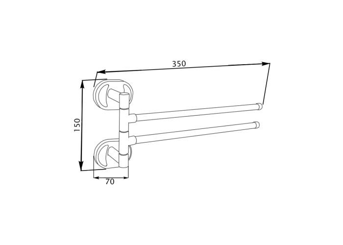 Полотенцедержатель GF (CRM)S-2912 выполнен из металла с хромированной поверхностью, которая предотвращает образование коррозии и грязи. Держатель с декоративными вставками имеет два поворотных стержня, на которые можно разместить два полотенца. Длина изделия 350 мм.