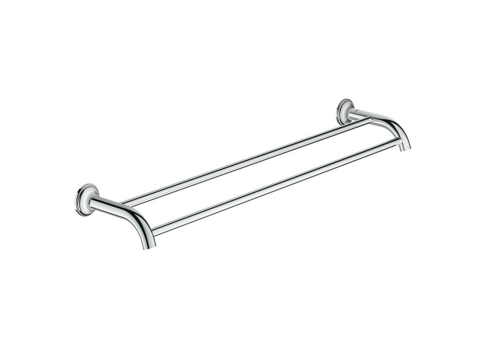 Двойной держатель для полотенец Grohe Essentials Authentic 40654001 имеет приятный и современный дизайн, элегантный стиль. Изделие создано для долговечной работы. Два стержня умещают полотенца шириной до 600 мм. Классический дизайн одновременно функционален и привлекателен, а хромированное покрытие по технологии GROHE StarLight® обеспечивает элегантное сияние его поверхности. Держатель отлично подойдет ко всей линейке аксессуаров Essentials Authentic.