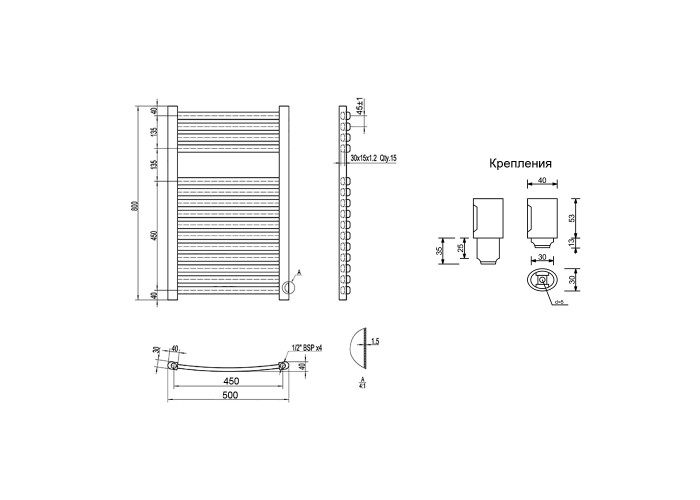 Полотенцесушитель, кран Маевского, заглушка металлическая, крепления.