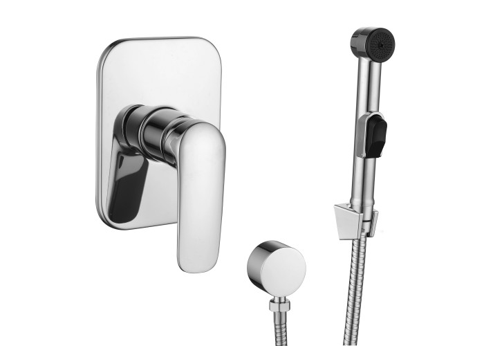 Однорычажный встраиваемый смеситель для душа с гигиеническим душем, настенный монтаж на одно отверстие, цвет хром