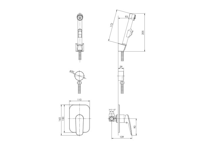 Смеситель скрытый+гигиенический душ