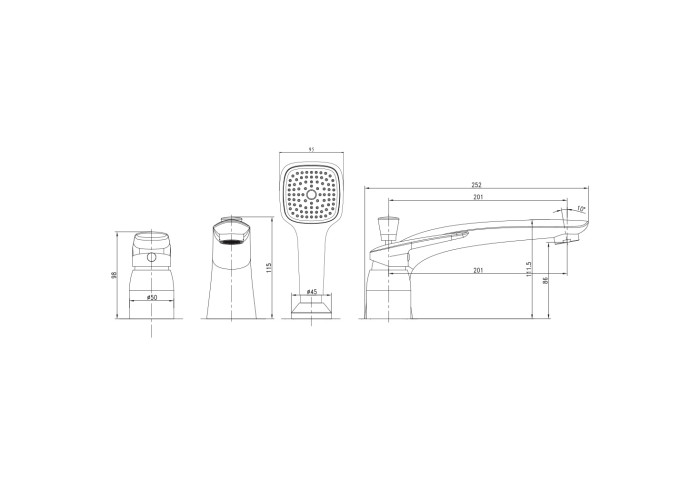PRAHA new смеситель для ванны, врезной, на три отверстия, хром, 35 мм