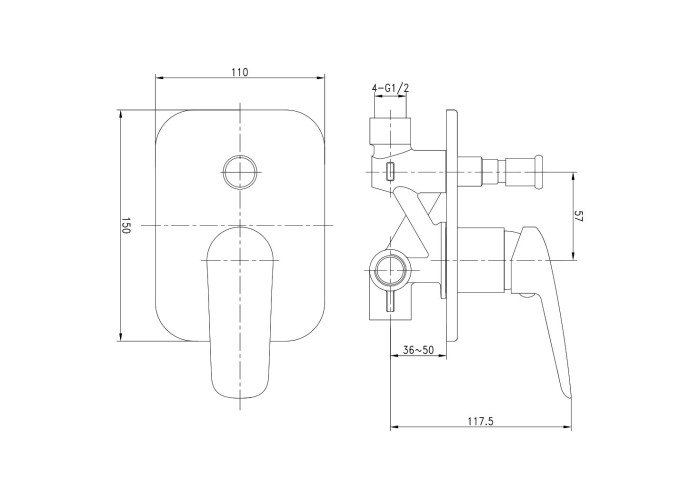 PRAHA new смеситель скрытого монтажа для ванны, латунь, однорычажный, цвет - хром.