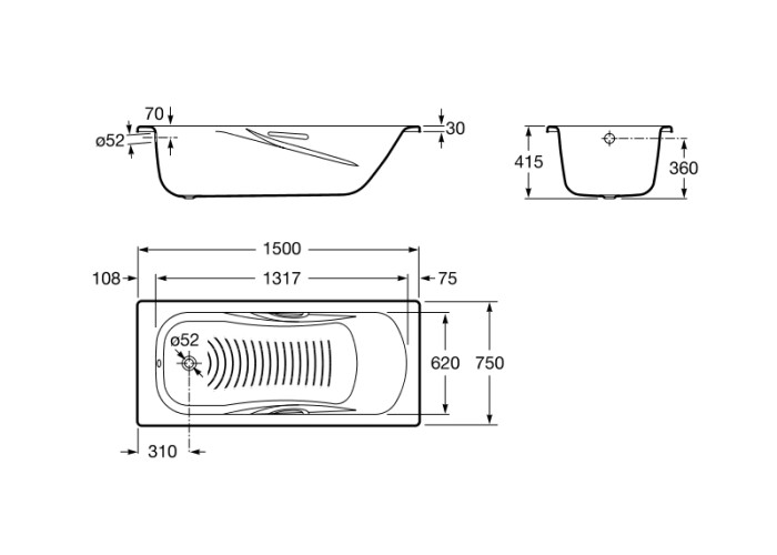 Эмалированная ванна c хромированными ручками в комплекте. Вместимость: 180 л.