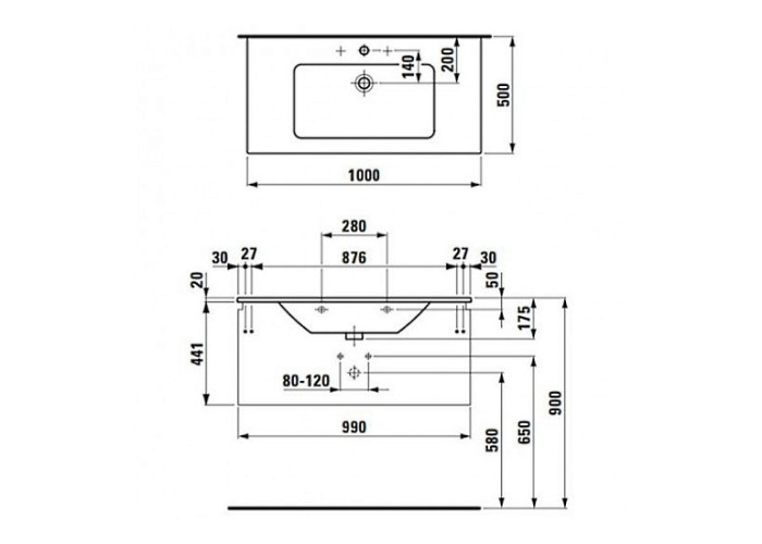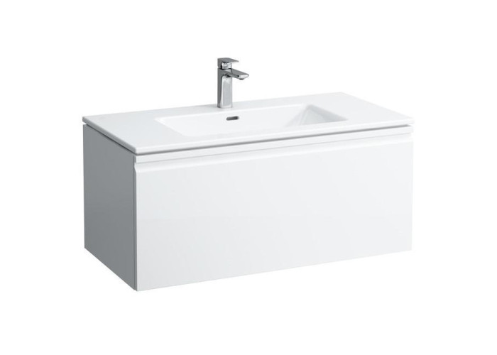 PRO S комплект тумба+умывальник 100*50*46 см (8179670001041+4835310964641) (цвет белый) 1 выдвижной ящик, система мягкого закрывания, петли слева, керамическая раковина с одним отверстием для смесителя, материал тумбы МДФ