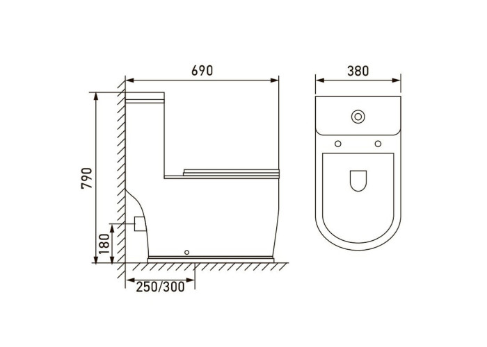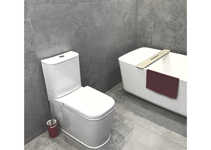Унитаз выполнен в неоклассическом стиле, устанавливается вплотную к стене, скрывая канализационную трубу. Смывной бачок 3/6л с нижним подводом воды оснащён качественным сливным механизмом Geberit. Тонкое быстросъёмное сиденье унитаза из антибактериального пластика Duroplast с функцией плавного опускания. В комплект входят крепления к полу.