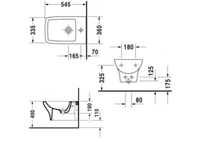 Биде подвесное с переливом, с плоскостью под смеситель. Включает крепление Durafix, а также эксцентрик с керамической крышкой выпуска