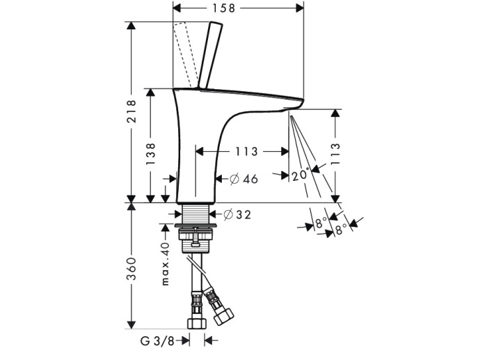 PuraVida Смеситель для раковины,однорычажный Выступ 113 mm, ламинарная струя, расход воды: 5 л/мин, сливной вентиль Push-Open (управление через напорную заглушку, для раковин с переливом), подходит для работы с проточным водонагревателем