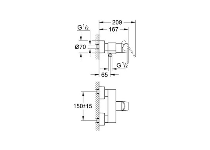 Смеситель для душевой кабины, однорычажныйкерамический картридж, регулировка расхода воды, отвод для душа снизу 1/2 со встроенным обратным клапаном, скрытые S-образные эксцентрики, с защитой от обратного потока