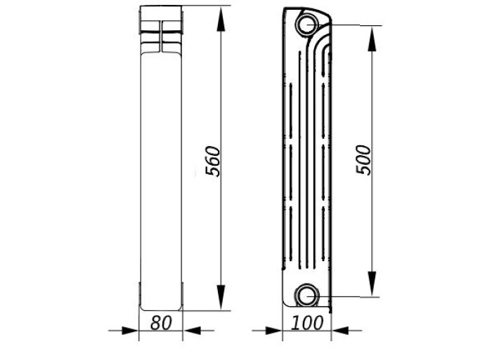 • Теплова віддача однієї секції при Δt70/60/50 ° C-208/178/148Вт