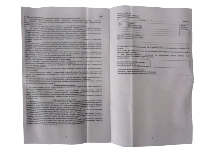 • Площа обігріву однієї секції при Δt70 ° - 3-5кб.м