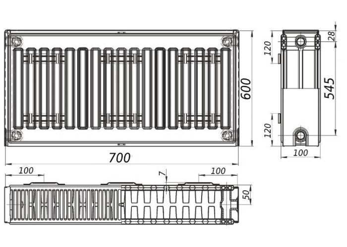 Радіатор сталевий панельний FORNELLO 22-типу бокового підключення 600-висоти 700-довжини