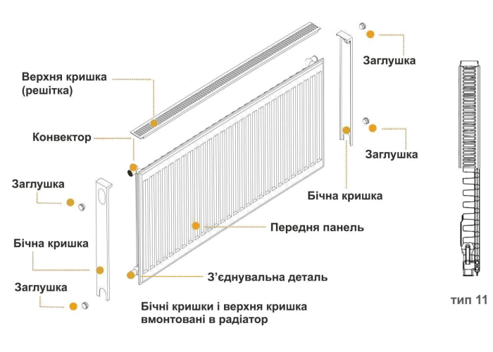 Радиатор стальной панельный тип 11 (бок) 500х1800 KALDE 0311-rad-501800 2006Вт