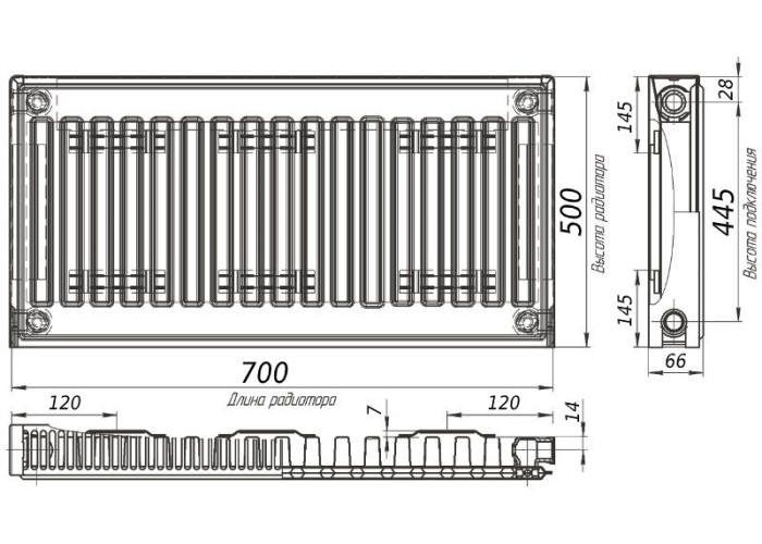 Радіатор сталевий панельний тип 11 (бок) 500x700 KALDE 0311-rad-500700 780Вт