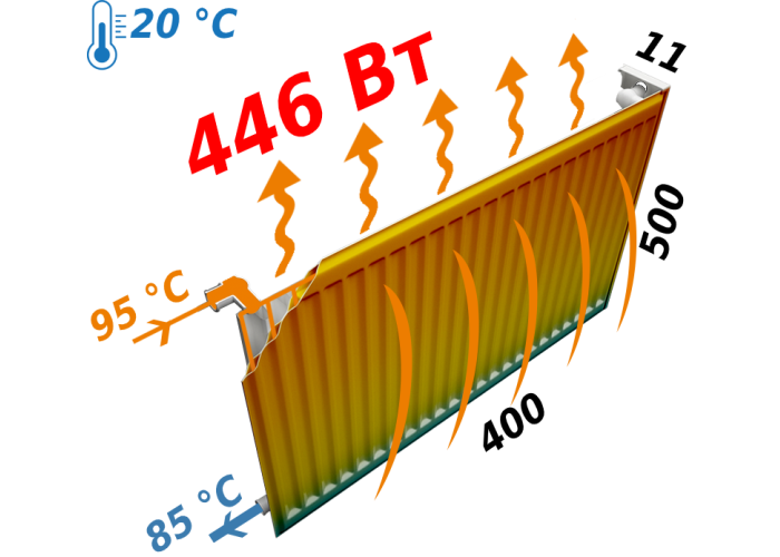 • Тепловая Мощность ∆t=70/60/50°C, Вт - 446/357/286