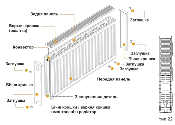 Радіатор сталевий панельний KALDE 22 низ 500х2000
