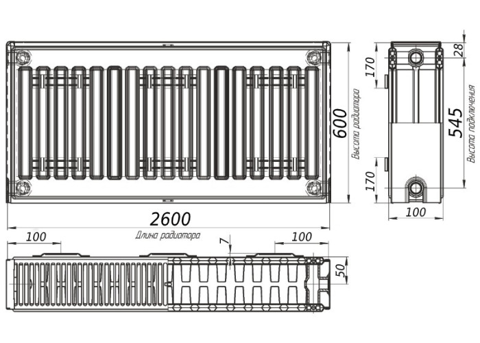 Радиатор стальной панельный тип 22K (бок) 600х2600 OPTIMUM 6365Вт