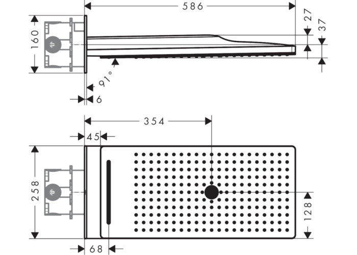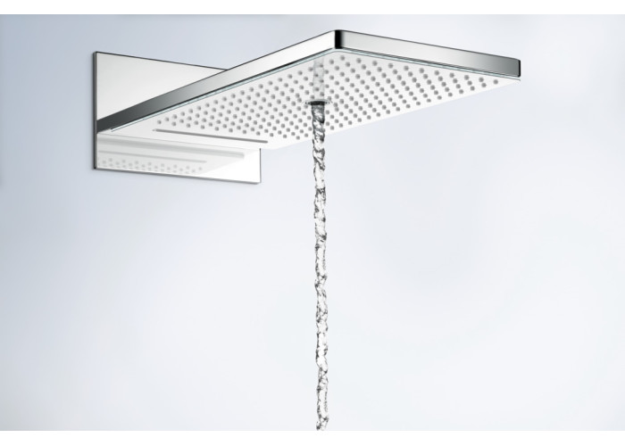 Верхний душ Hansgrohe Rainmaker Select 580 3jet 24001600 тип струи: Rain, Rainflow Waterfall, Mono расход воды для струи Rain (при 3 бар): 17 л/мин расход воды для струи Mono (при 3 бар): 20 л/мин расход воды для ливневой струи (при 3 бар): 18 л/мин легкоочищаемый белый душевой диск материал душевого диска: безопасное стекло съемный душевой диск для очистки монтаж: стена – установка скрытого монтажа на iBox.