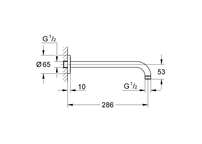 Держатель верхнего душа , встраиваемый в стену, хромированная поверхность. Вынос 282 мм, резьбовое соединение 1/2". Для любых верхних душей Rainshower, кроме Rainshower Jumbo.