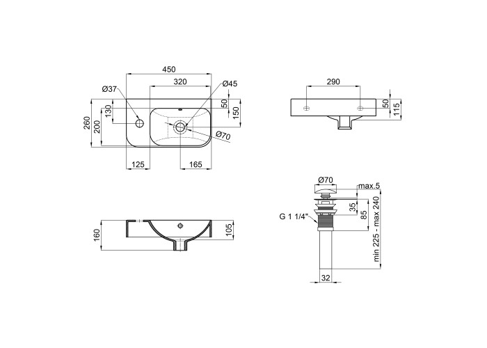 Раковина, донный клапан, крепежи.