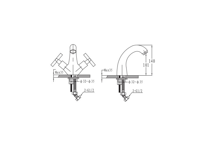 RALSKO смеситель для биде, хром, 1,2'Крестовые рукоятки, керамический узел смешивания, расход воды до 7 л/мин, аэратор, подходит для проточных нагревателей