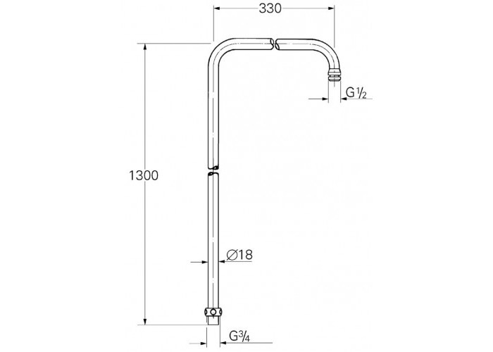 Кронштейн для верхнего душа, настенный, душевая водоводная трубка 18 мм, гайка подключения 3/4, высота 1300 мм, вынос 330 мм, хромированная поверхность